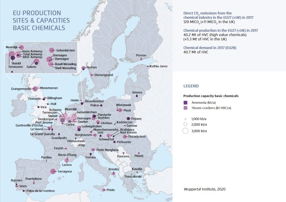 2/ Ammonia (NH3) is produced at a few dozen sights in Europe and responsible for 1/5 (24 MtCO2) of the CO2 emissions of the EU chemical industry. Ammonia is used for many different products of the chemical industry, but the vast majority goes into the production of fertilizers.