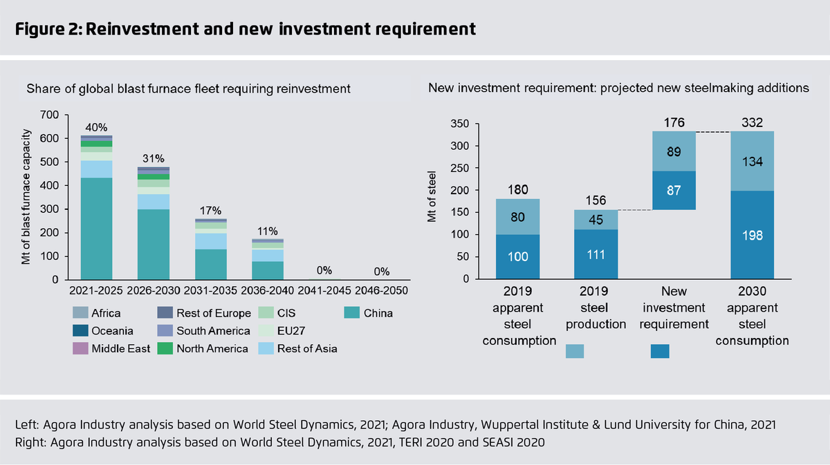 By 2030, 71% of the global blast furnace fleet will reach the end of its technical lifetime. In emerging economies, at least ~175 Mt of new #steelmaking capacity is required to meet rapidly rising steel demand. (2/15)