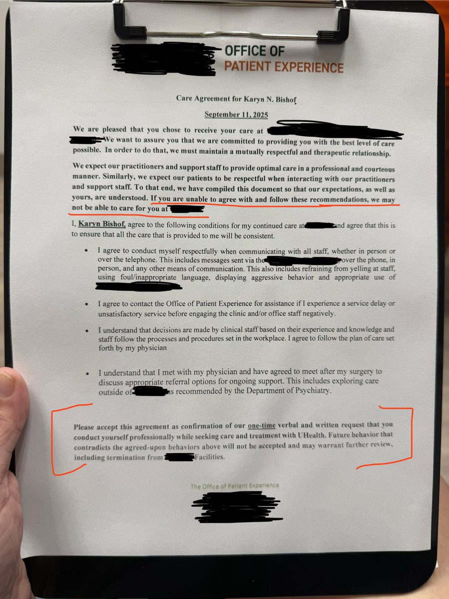 I will start off by saying, I did not sign this letter. I’ll probably lose access to 20+ clinicians for refusing to do so. I will not be threatened into settling for subpar or absent care, nor risking life threatening complications because a clinician cannot take accountability.