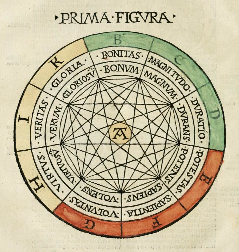 In 1274, Ramon Llull built a system to combine concepts mechanically.
