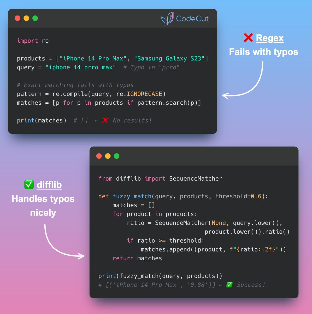 🧵 1/4: Turn failed exact matches into successful fuzzy matches with difflib!