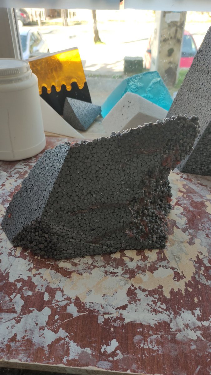 Pour tailler le polystyrène , j'utilise un fil chaud , ce qui permet d'avoir des découpes propres et tout un tas de possibilités de formes
