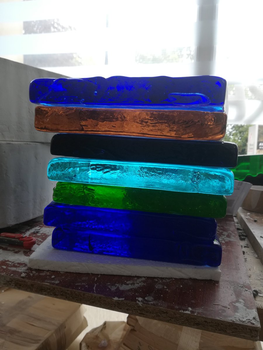 On commence par Jacques Pineau, verrier et emailleur, installé au pays basque, qui utilise la technique du fusing, pour créer des tableaux et des stèles dans lesquelles il inclus également des feuilles de métaux