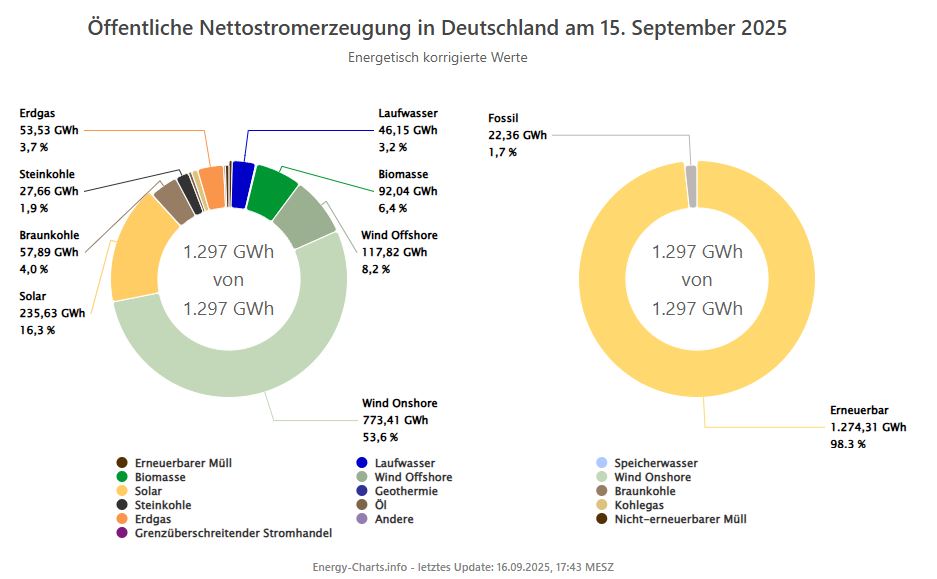 ..lohnt konnte man an der Rekordproduktion von Windstrom beim ersten Herbststurm dieses Jahres in den letzten beiden Tagen sehen. Gestern & vorgestern erzeugte alleine der Wind jeweils über 70% des in Deutschland produzierten Stroms.