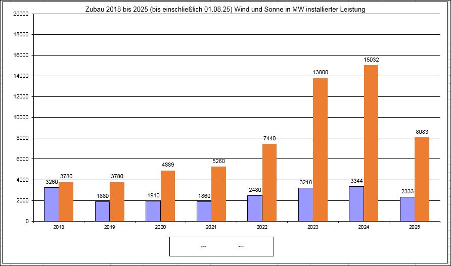 Anfang August liegt der Nettozubau (Neubau minus Rückbau) bei der #Windkraft bei einer installierten Leistung von 2,33 GW (und bei #PV bereits bei 8 GWp).