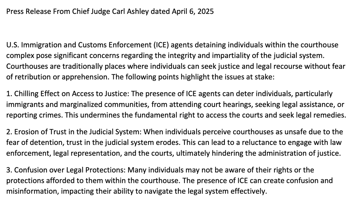 Judge Dugan appears to be in good spirits as she sits between her attorneys at the defense table.