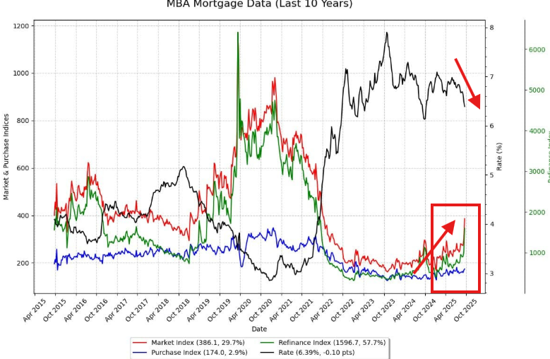US mortgage demand just surged +29.7% over last week as Fed rate cuts began.