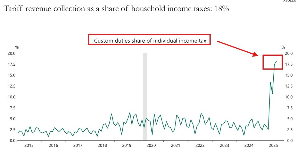 The US is now collecting tariffs that are equal to 18% of household income taxes.