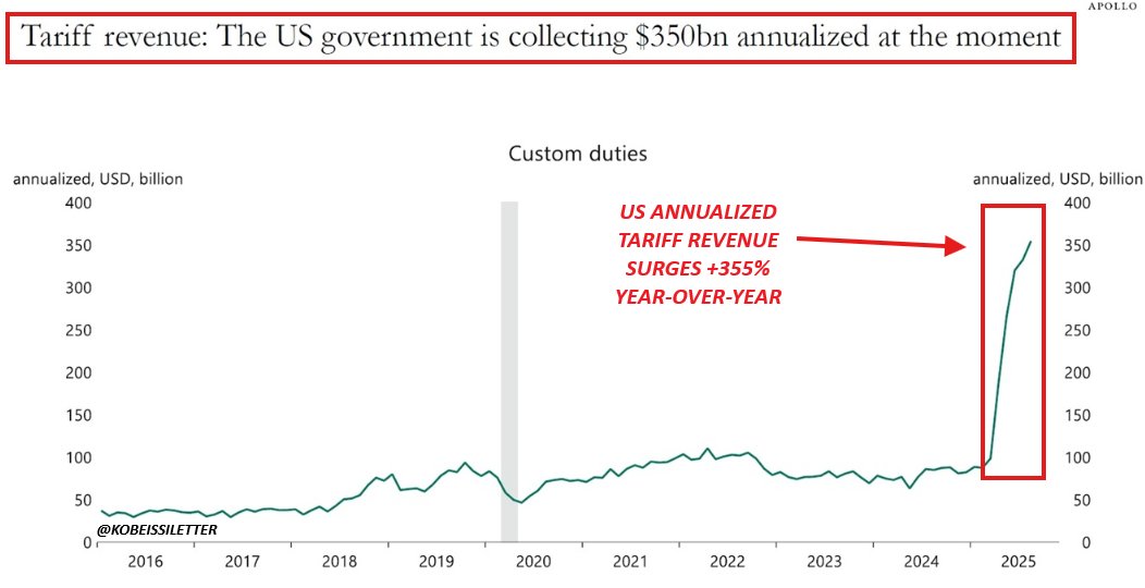 The US is now collecting a record $350 BILLION in annualized tariff revenue.