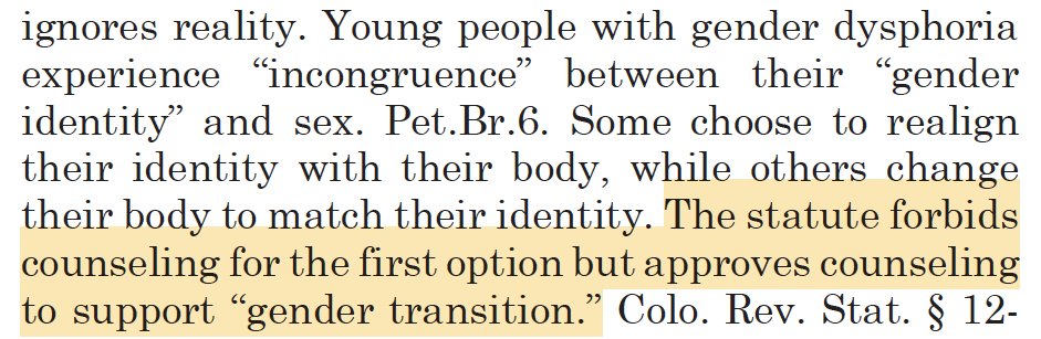 As our brief explains, CO law bans counseling conversations that address gender dysphoria—but only in one direction.