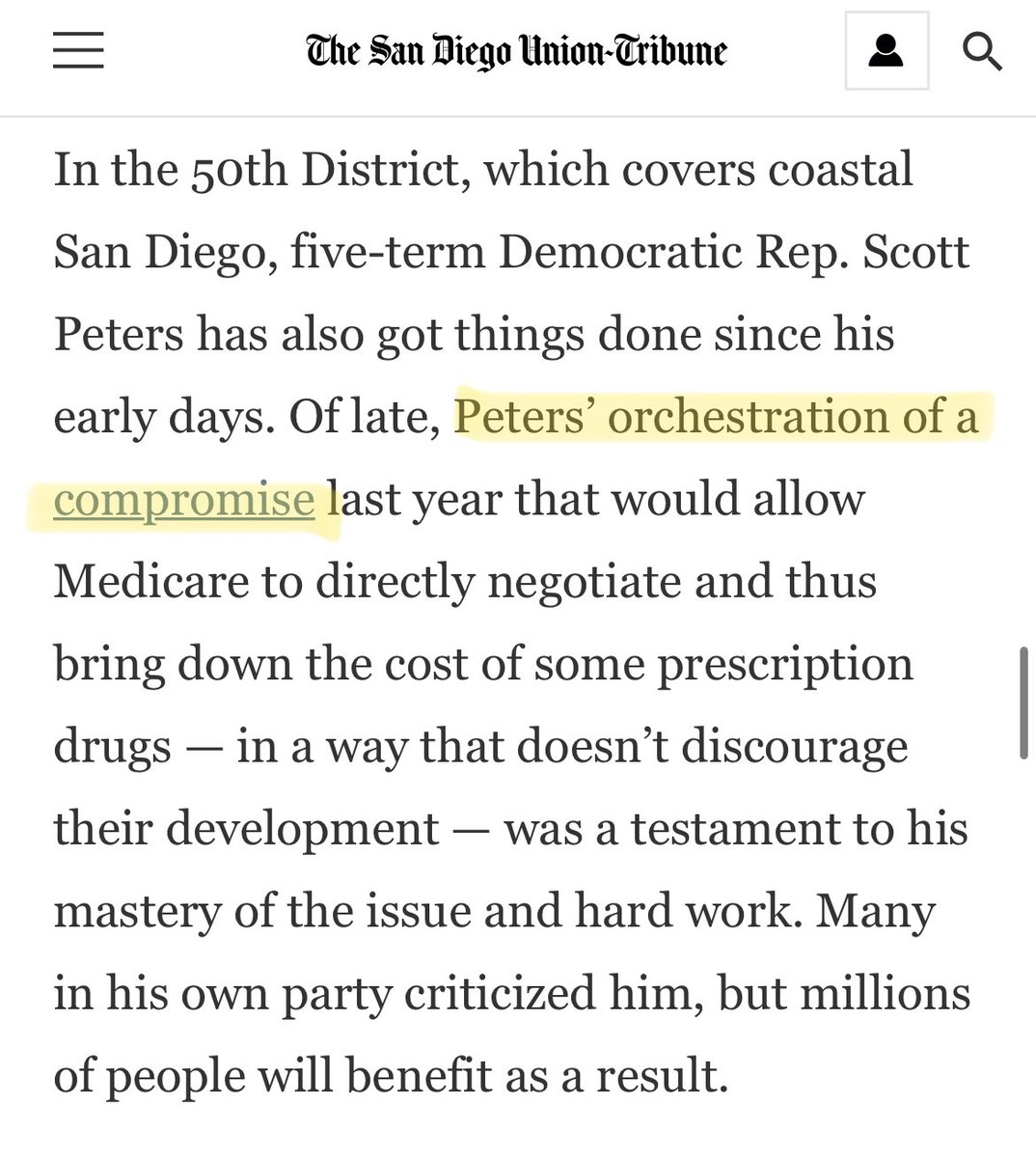 Let’s be clear – @RepScottPeters, along with @RepSchrader and @RepKathleenRice voted *with Republicans* to tear down the Lower Drug Costs Now Act which had overwhelming support from most of the Democratic caucus – Biden, Pelosi, and Progressives included.