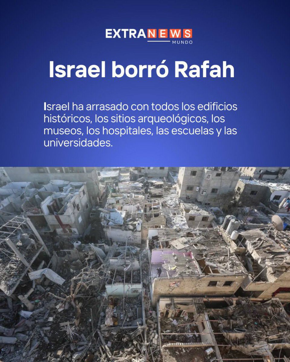 ✅ Dice el comunicado que las fuerzas israelíes han destruido más del 90 % de las viviendas (más de 20 000 edificios) en Rafah.