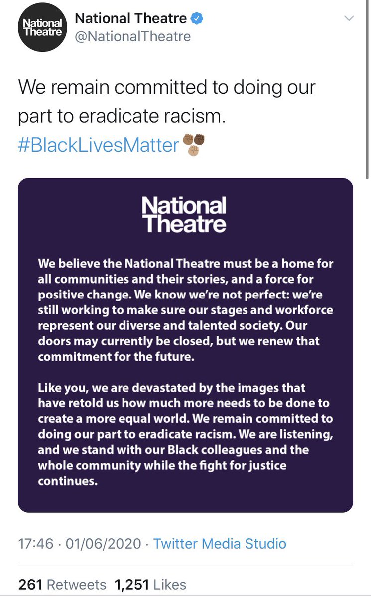 The NT is a National Portfolio Organisation and has βcommitted to improving gender, ethnicity and disability representation among their staff as part of their subsidy agreements with ACE since 2014/15.β thestage.co.uk/news/slow-progβ¦
