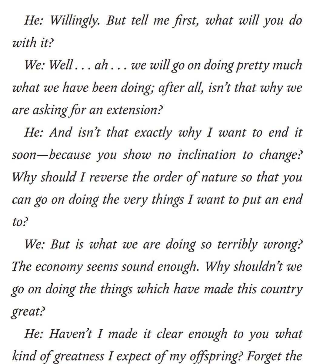 Nibley begins with the request of the world that one might delay (perhaps indefinitely) the arrival of the Second Coming and how "the economy stupid" prevails over us sometimes