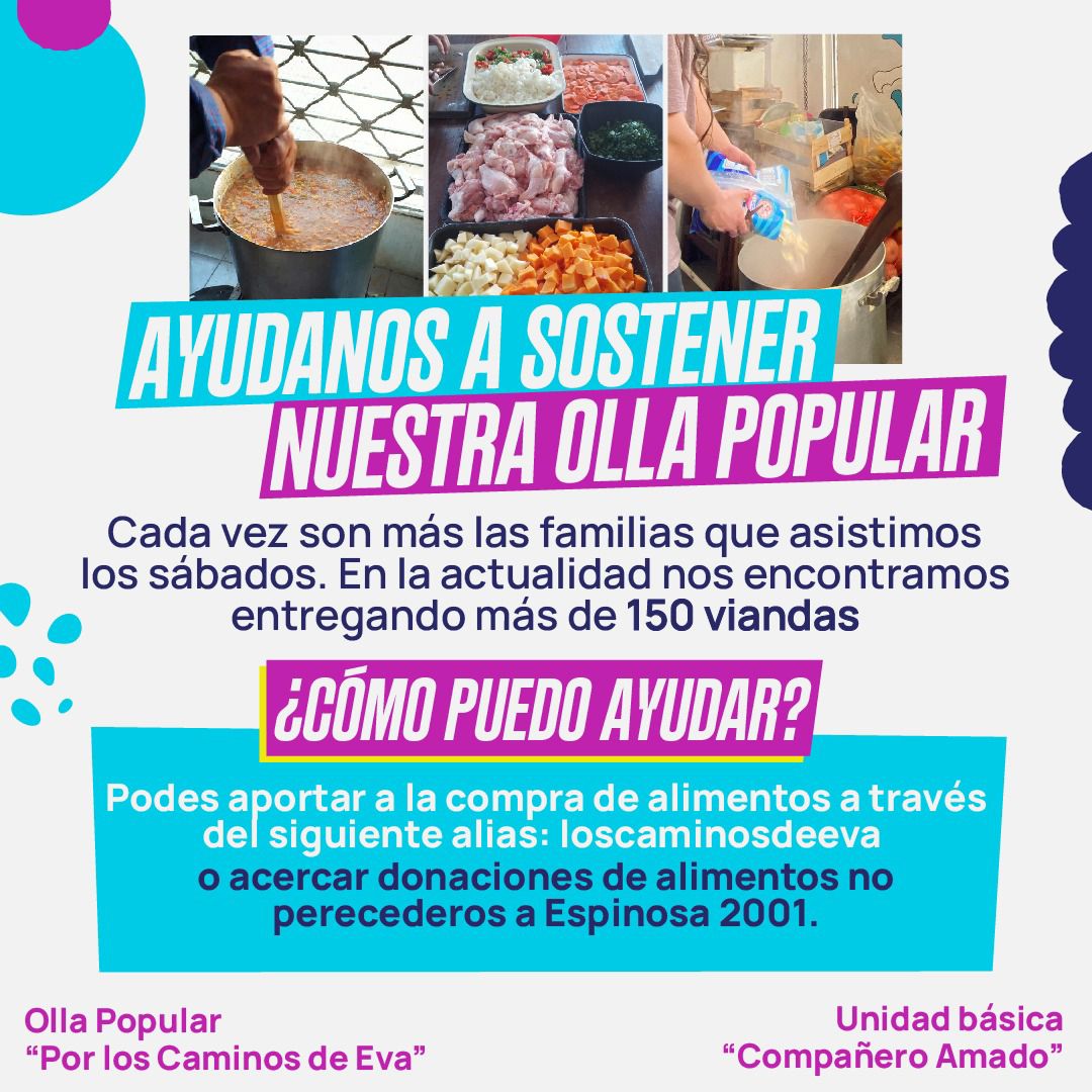 comida. Tu aporte es FUNDAMENTAL para darles un plato de comida caliente a quiénes que se acercan cada sábado por la esquina de Espinosa 2001.