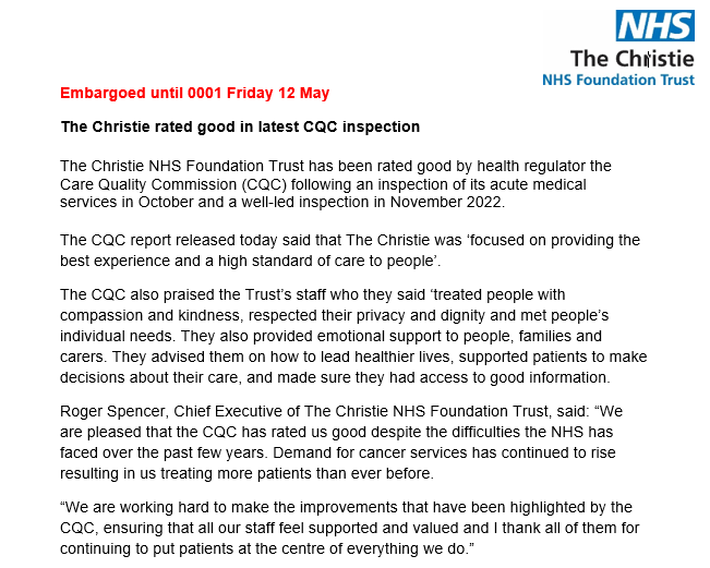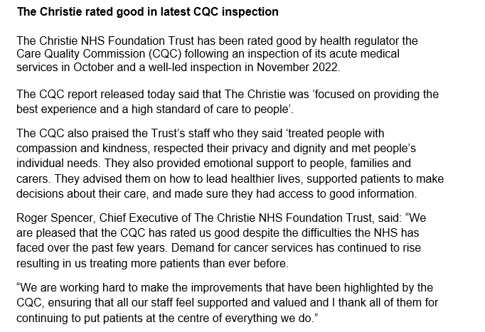 Leadership of famous cancer trust The Christie has been downgraded by two ratings - from outstanding to 'requires improvement'.