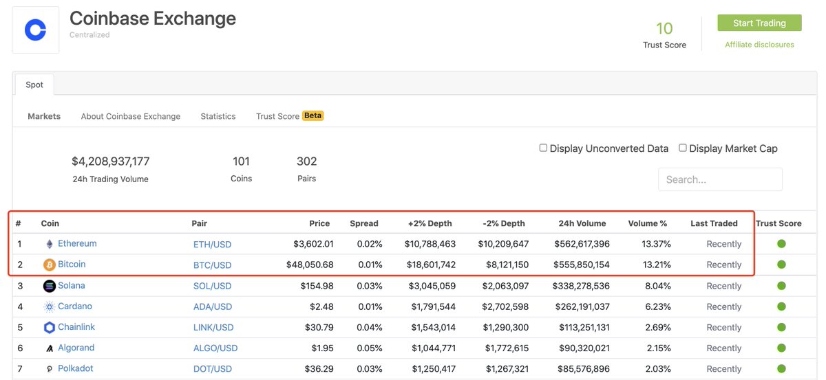如果留意Coinbase上项目成交量,就会从5月份发现一个微妙的变化:ETH日成交量跟BTC几乎持平甚至偶尔反超,当二季报公布之后,ETH成交量有史以来第一次完成了对BTC的超越。