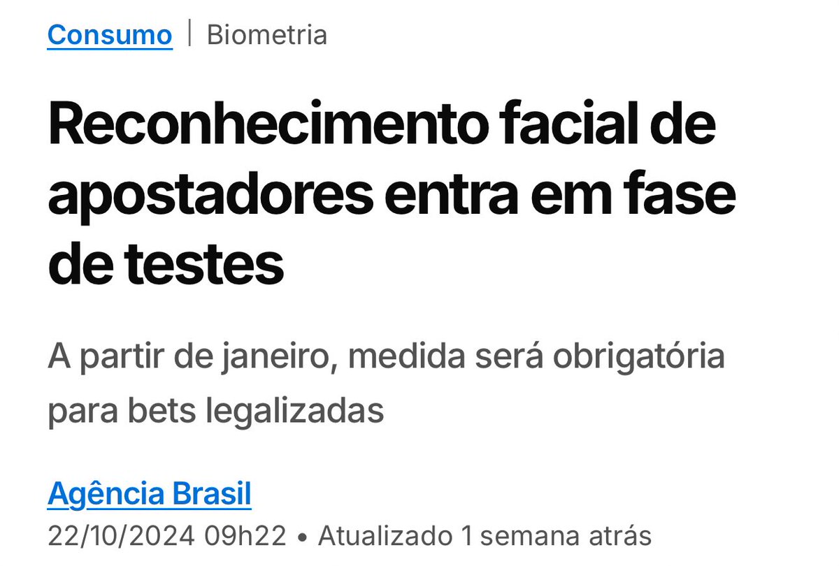 Obrigar as bets a pedir reconhecimento facial para o usuário a partir de 2025.Image