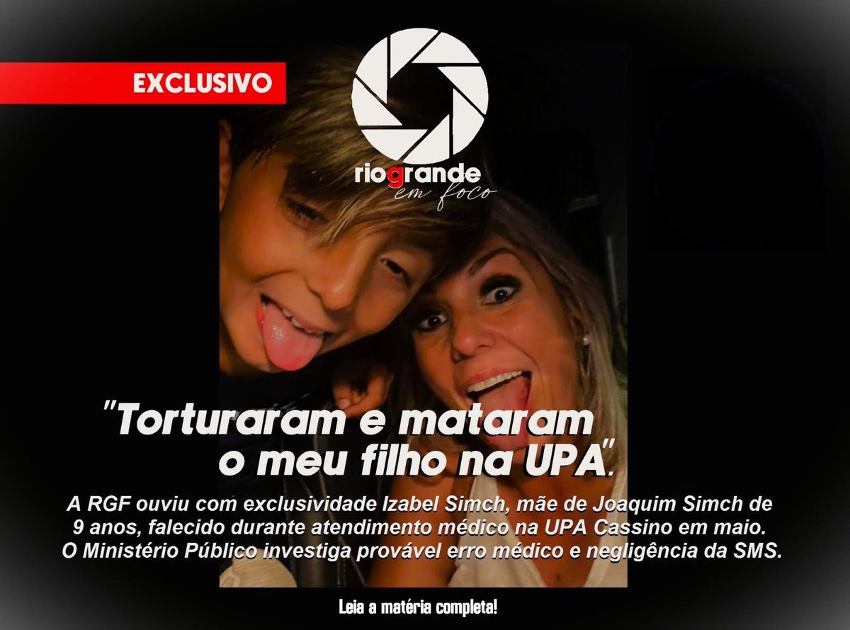 Hoje, a Rio Grande em Foco publicou uma entrevista com Izabel Simch, mãe de Joaquim Simch, menino de 9 anos que faleceu em 28 de maio (!) na UPA do Cassino em Rio Grande, após o que ela e documentos apontam como uma série de erros e negligências médicas.