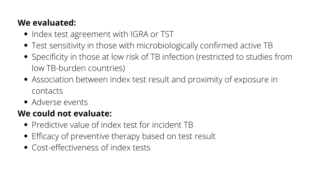 With an estimated 2 billion ppl w/ #TBinfection (TBI) worldwide, TBI screening is important for TB control - but, scalability of commonly-used TBI tests is limited (eg. high cost of IGRAs, low specificity of TST),making it a priority to evaluate the dx performance of newer tests