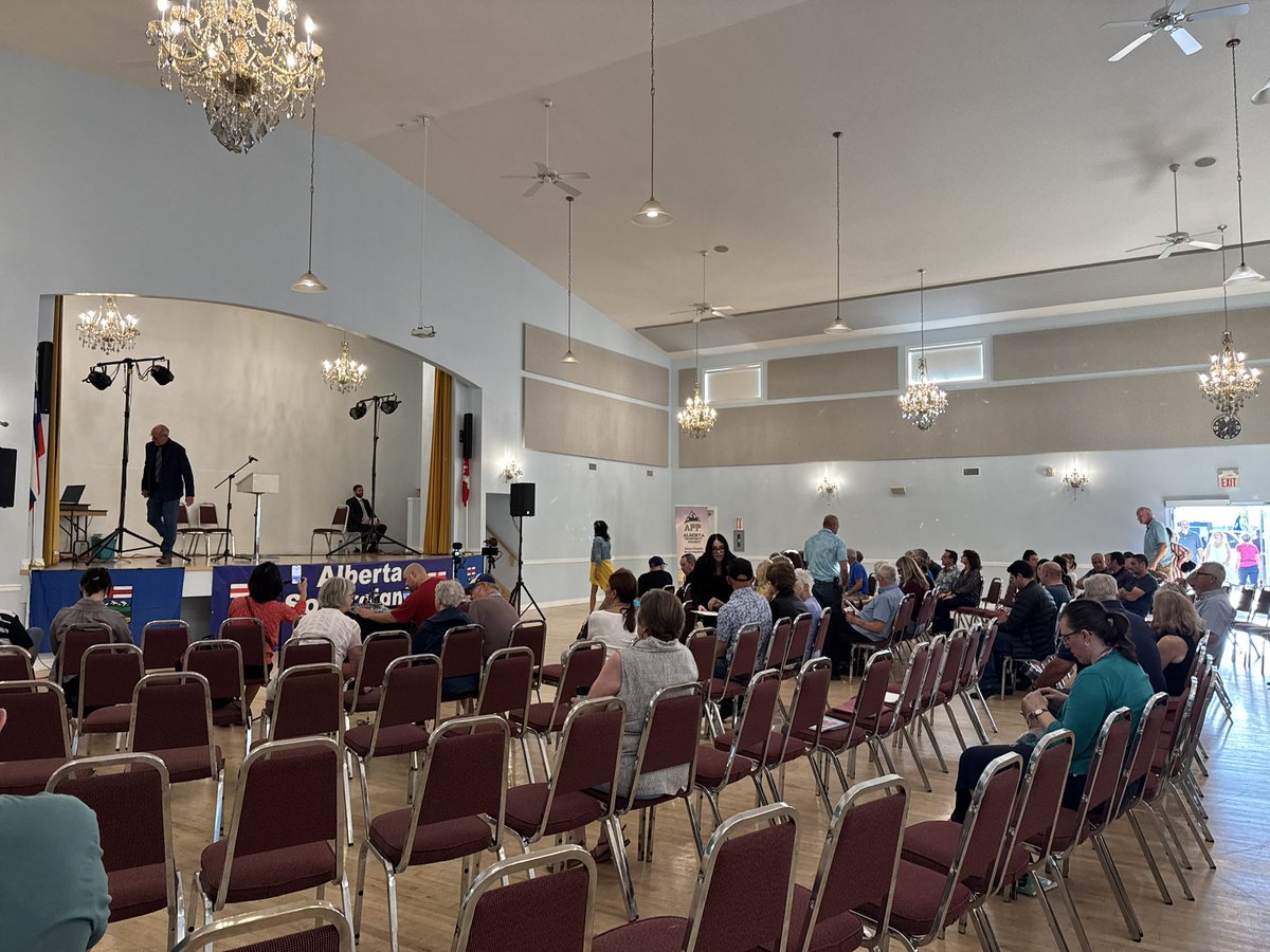 There's a long line for the petition, and people are continuing to join it. Dr. Dennis Modry, former CEO of the Alberta Prosperity Project (which has been holding separation town halls across the province this past year) is in attendance.