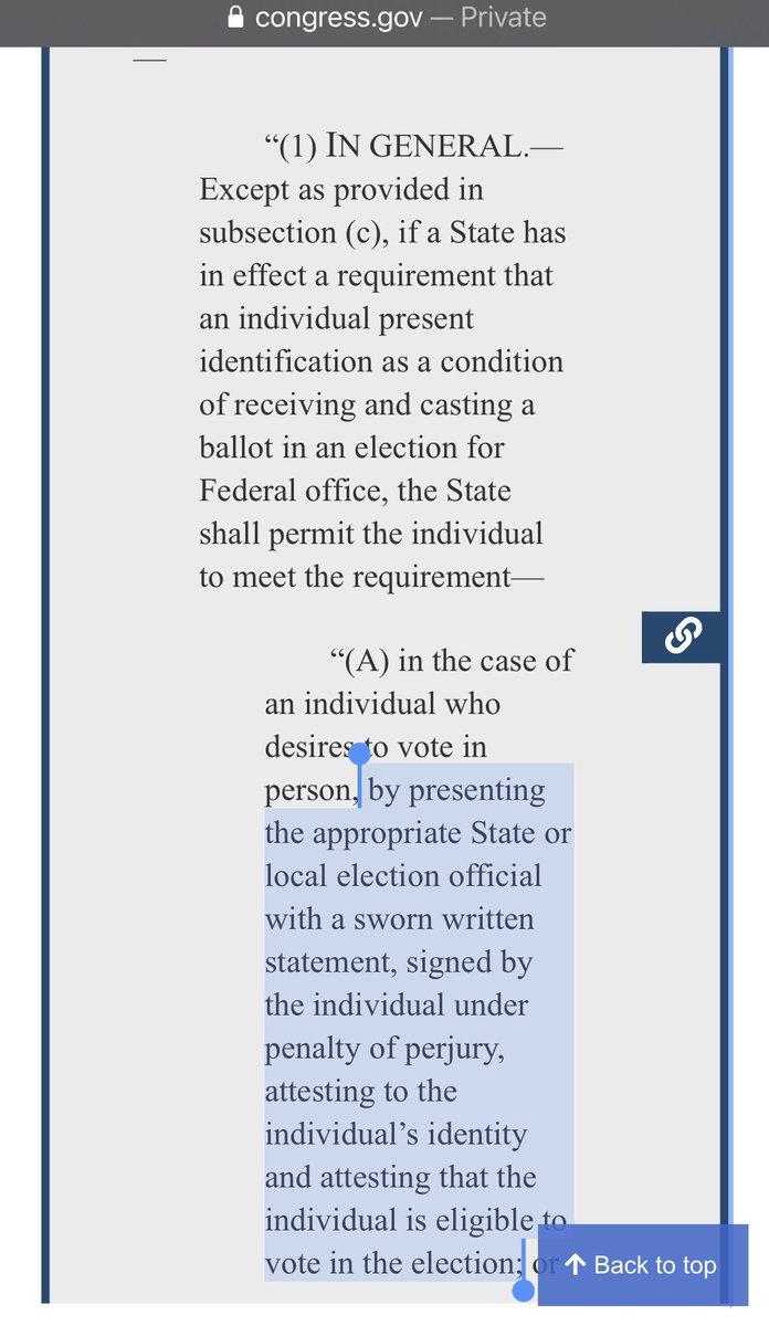 Bill requires states to allow voters who do not show ID to instead submit a signed statement under penalty of perjury attesting to their identity and eligibility to vote.