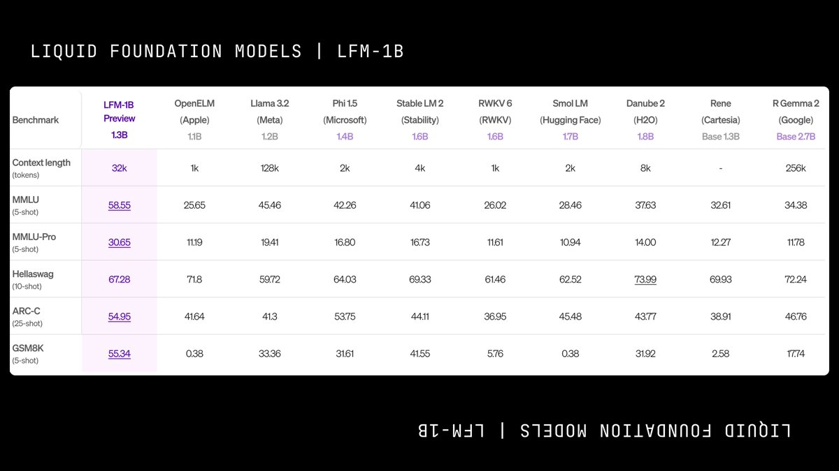 LFM-1B performs well on public benchmarks in the 1B category, making it the new state-of-the-art model at this size. This is the first time a non-GPT architecture significantly outperforms transformer-based models.