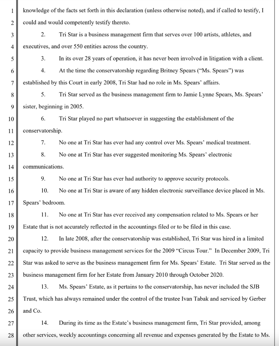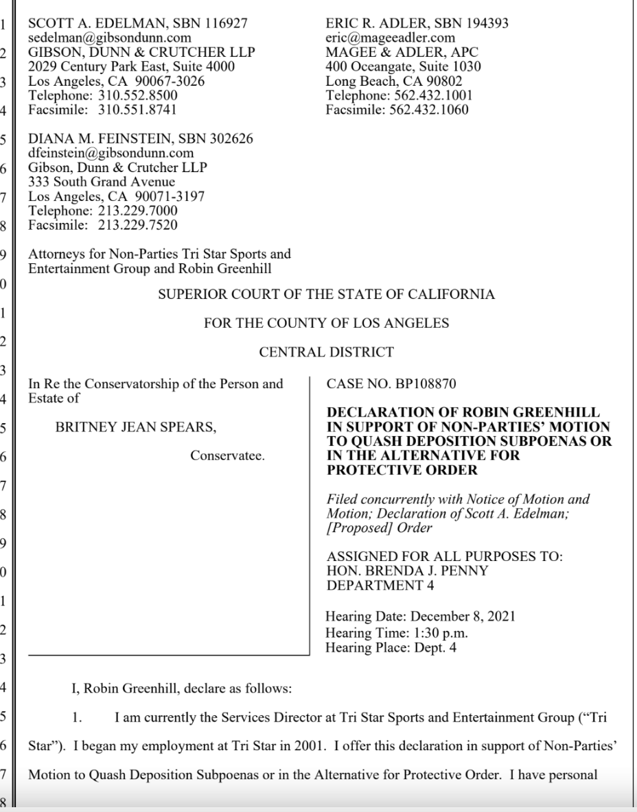 2. This seems to contradict a sworn declaration fr Tri Star staffer Robin Greenhill:
