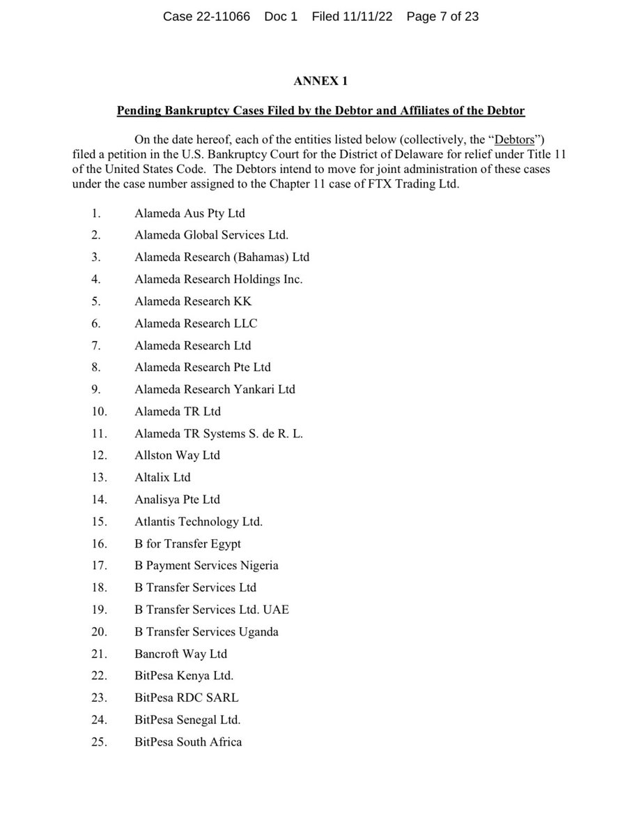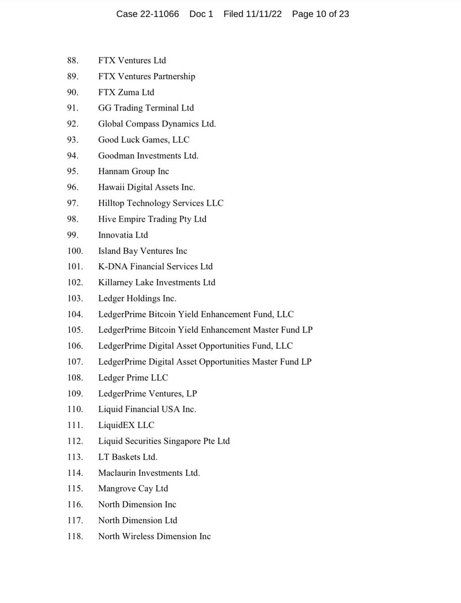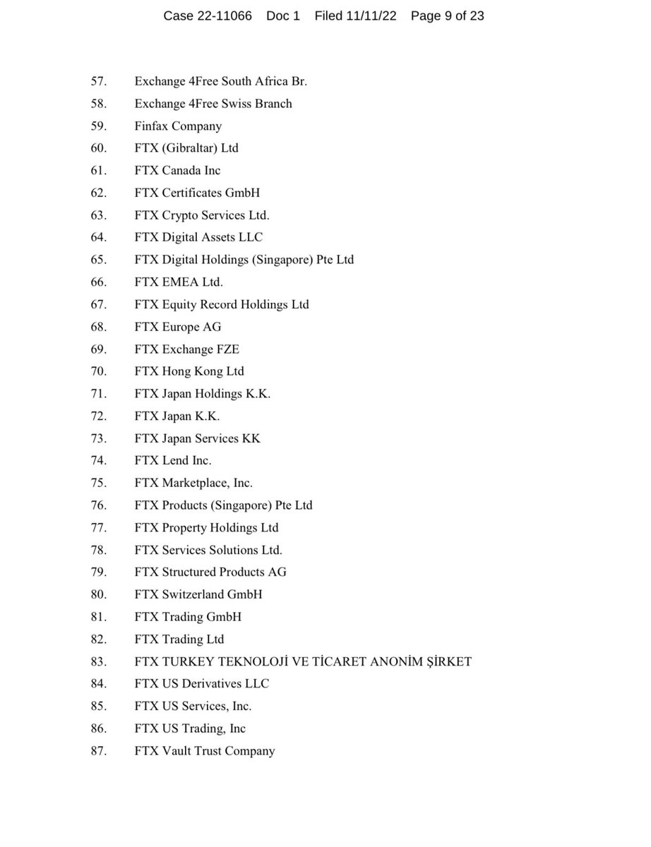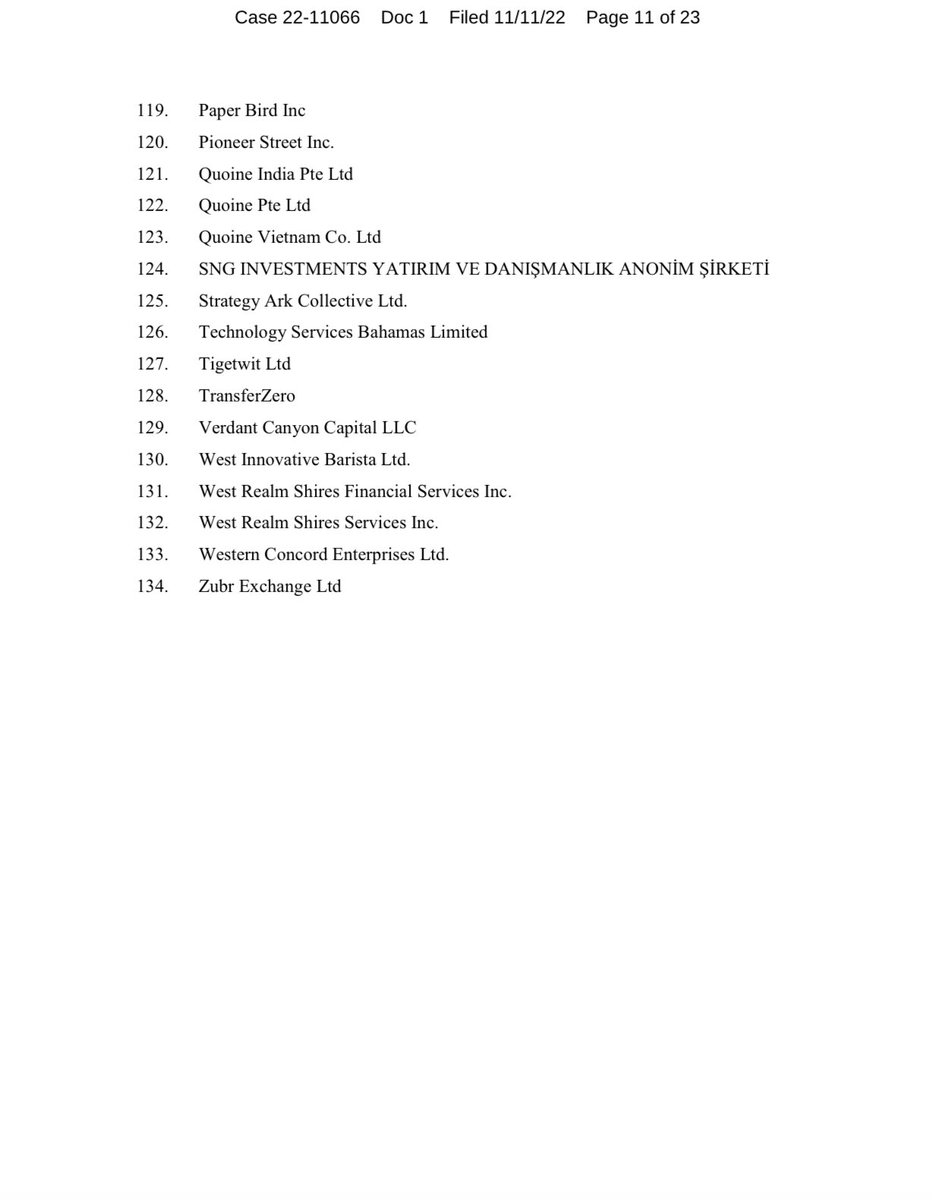 In all, 134 companies owned wholly or in part by Sam Bankman-Fried, @SBF_FTX, are listed on the official bankruptcy filing.