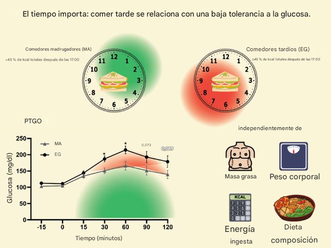 1. Las comidas nocturnas elevan la glucosa, el cortisol y la insulina, tres desencadenantes de la grasa visceral.