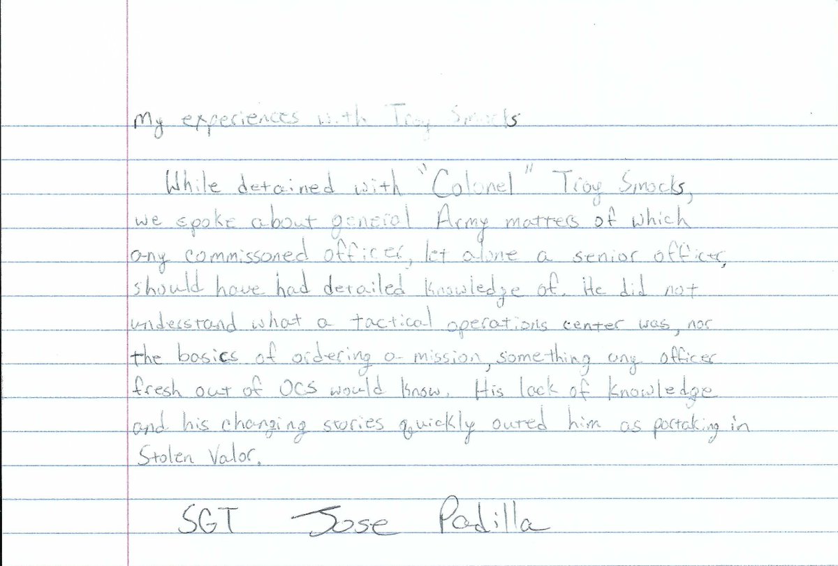 One of the most hilarious things about Smocks' stolen valor, or perhaps the most disturbing, was that he tried to convince other veterans that he had actually served with them. Troy Smocks told Jeff McKellop, for instance, that they served in the same unit overseas, which is impossible. He told Jeff he served in Africa. He told me he served in Korea. He told others he was in Iraq. Meanwhile he's also said he retired from the Army in the 80's. There's no possible way to reconcile all these lies chronologically, especially at his age and with his fake rank of Colonel.