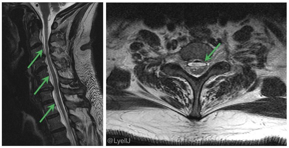 Fortunately, her spine MRI showed no sign of cord or cauda equina compression. So what’s going on here?