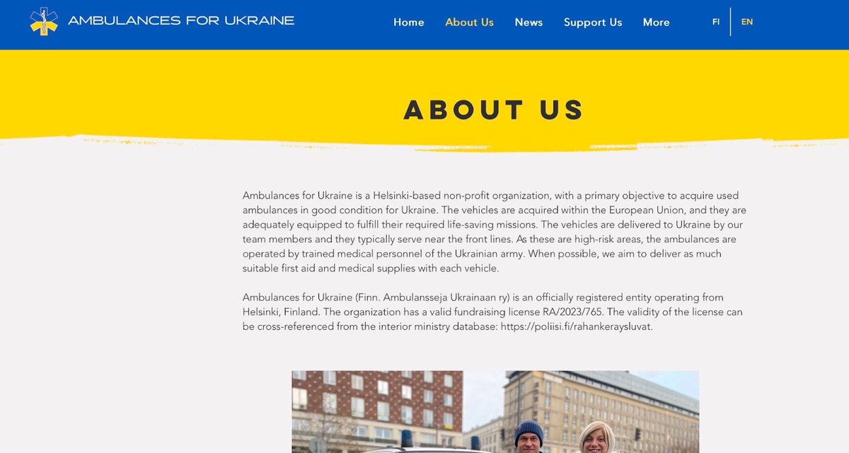 2/5 This week, I’m looking at Ambulances for Ukraine, a Finnish fundraising organization! They were recommended last week and I decided to try and give them a boost.