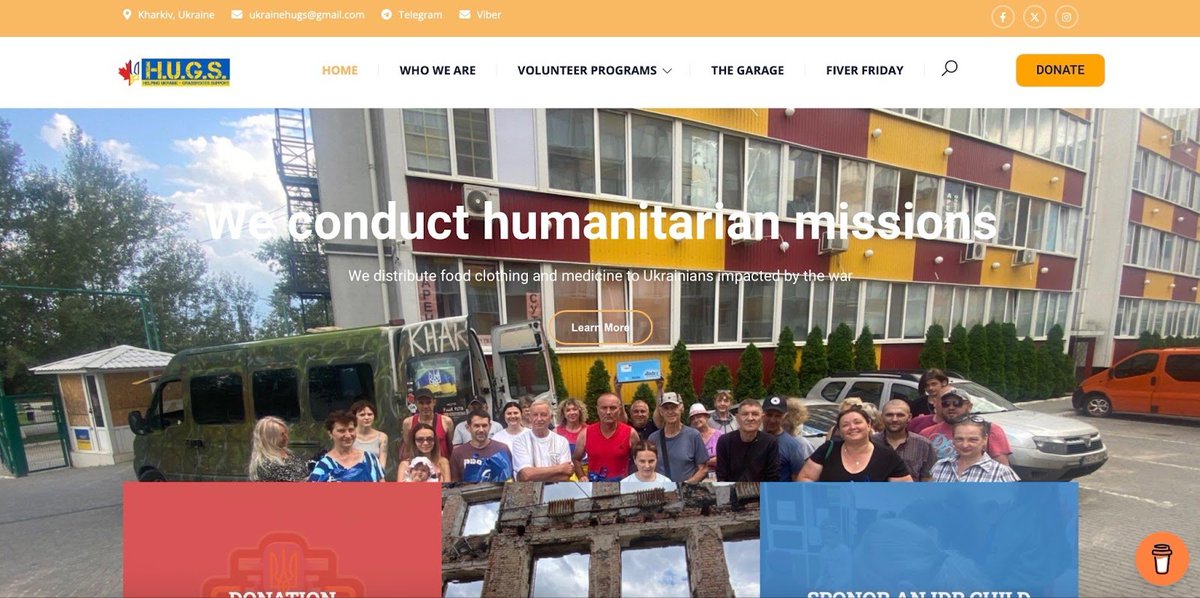 2/5 This week I found HUGS Ukraine, a Canadian NGO that has been working tirelessly since 2022 to provide support to Ukraine. They have four main programs, mostly working with the civilian population. Their website is linked here: hugsukraine.org