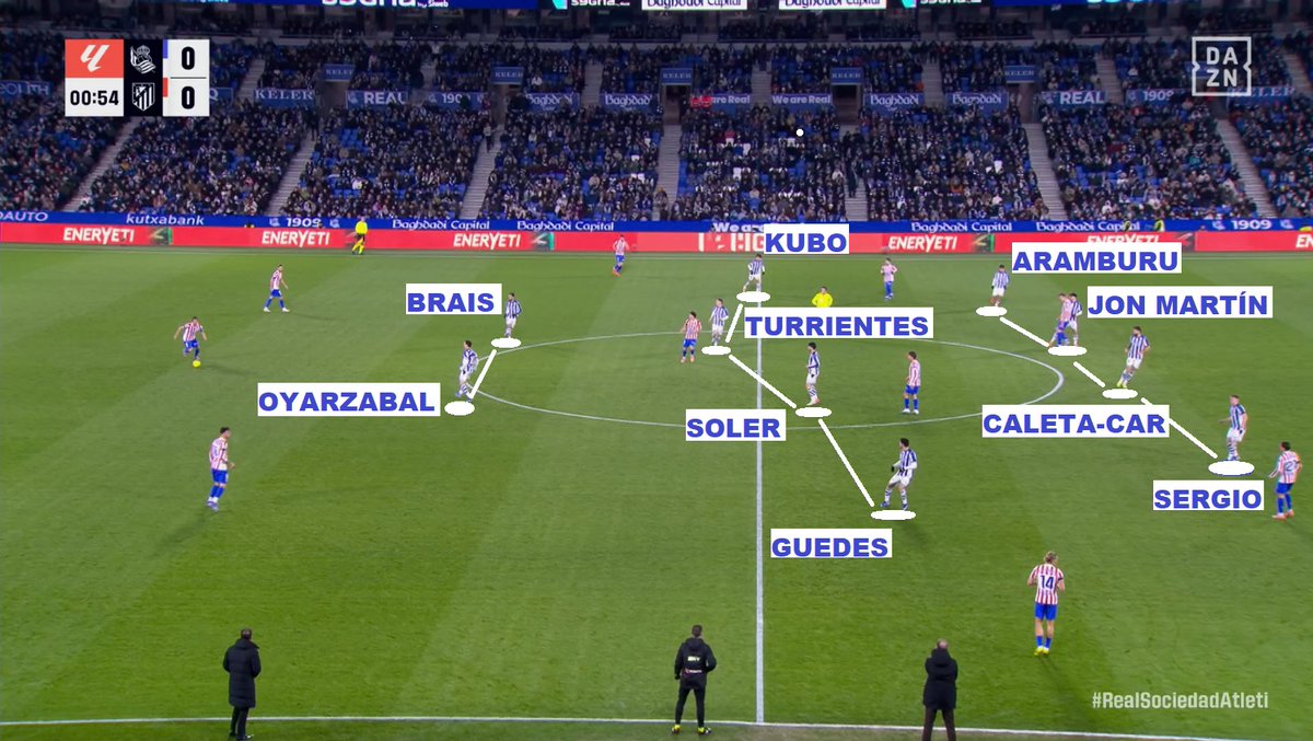 El 4-4-2 de la Real es peculiar en la Liga. Junta dentro a muchos 'jugones' y obliga a casi todos los adversarios a modificar su presión. ¿Cómo?