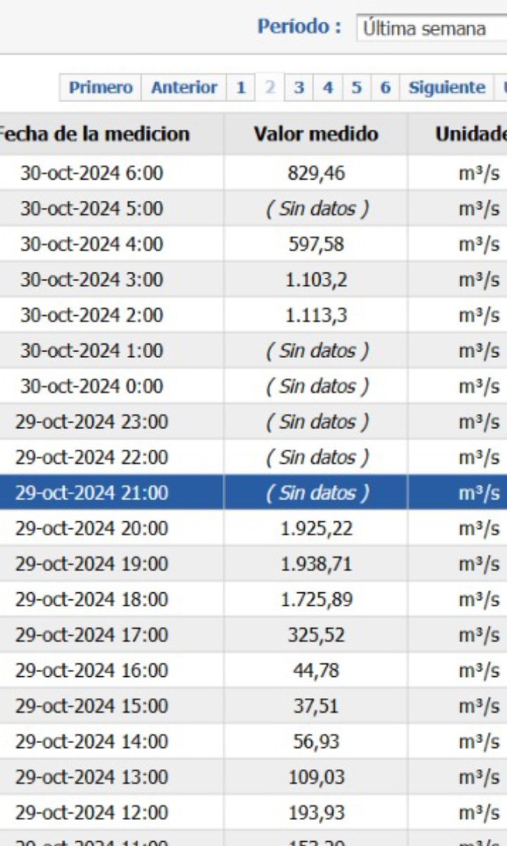 Los datos entre ambas horas ya estaban manifestando una tendencia muy peligrosa, con una lectura que pasaba según datos del SAIH (sistema automático de información hidrológico) con una lectura de 44,78 m3/s a las 16:00 a 352,52 a las 17:00 y 1725,89 a las 18:00.