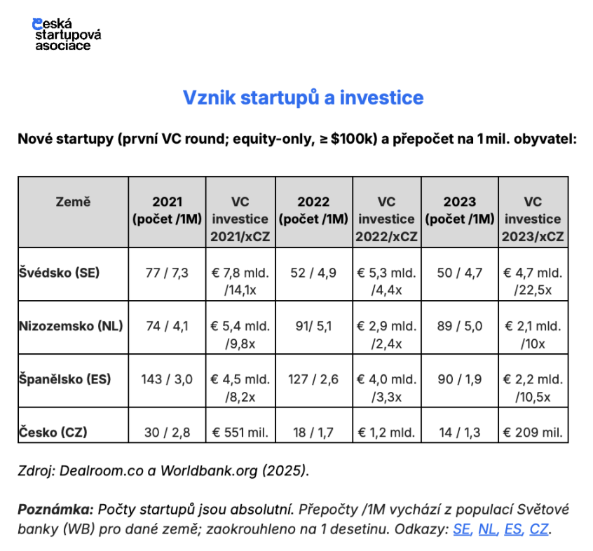 Začněme nejtvrdšími čísly. V roce 2023 vzniklo ve Švédsku, zemi se zhruba stejným počtem obyvatel, 50 startupů s investicí nad 100 tisíc eur. U nás 14.