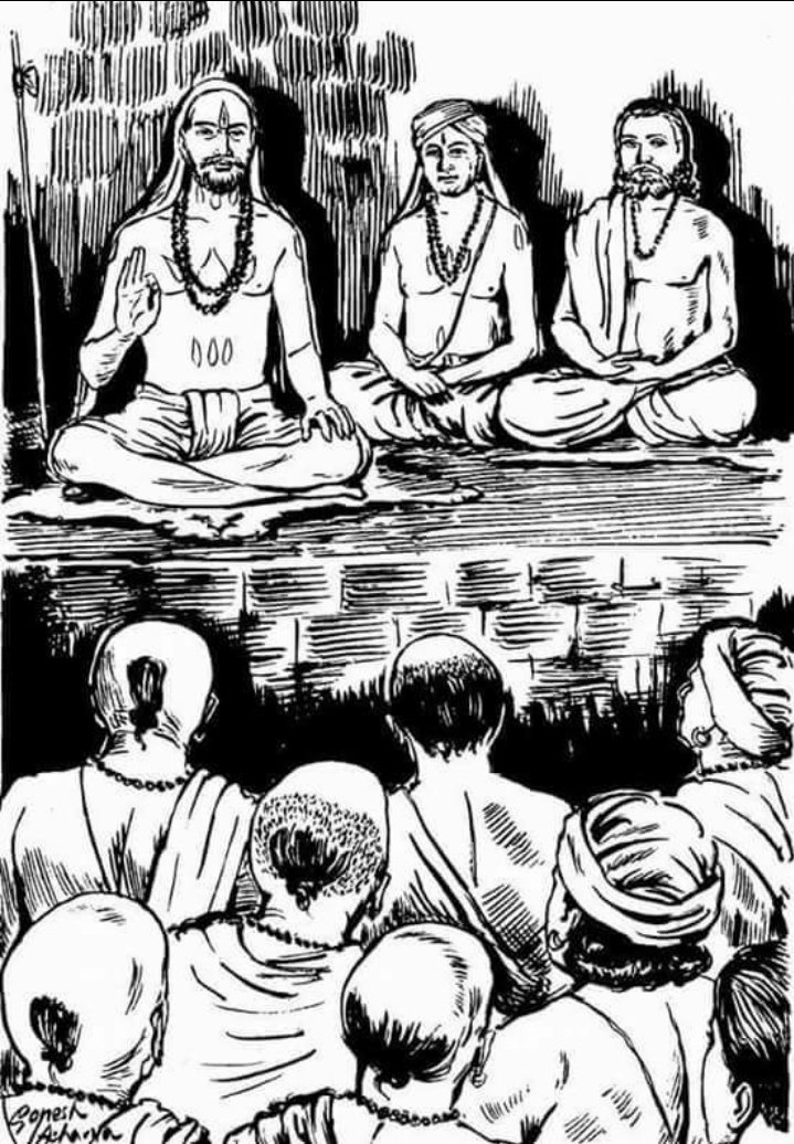 Once Sri Vyasatirtha held the golden idol of Vasudeva Krishna in his clenched fist (covering it from the viewers). Sricharana then asked everyone to guess what was in the clenched fist. (2/4)