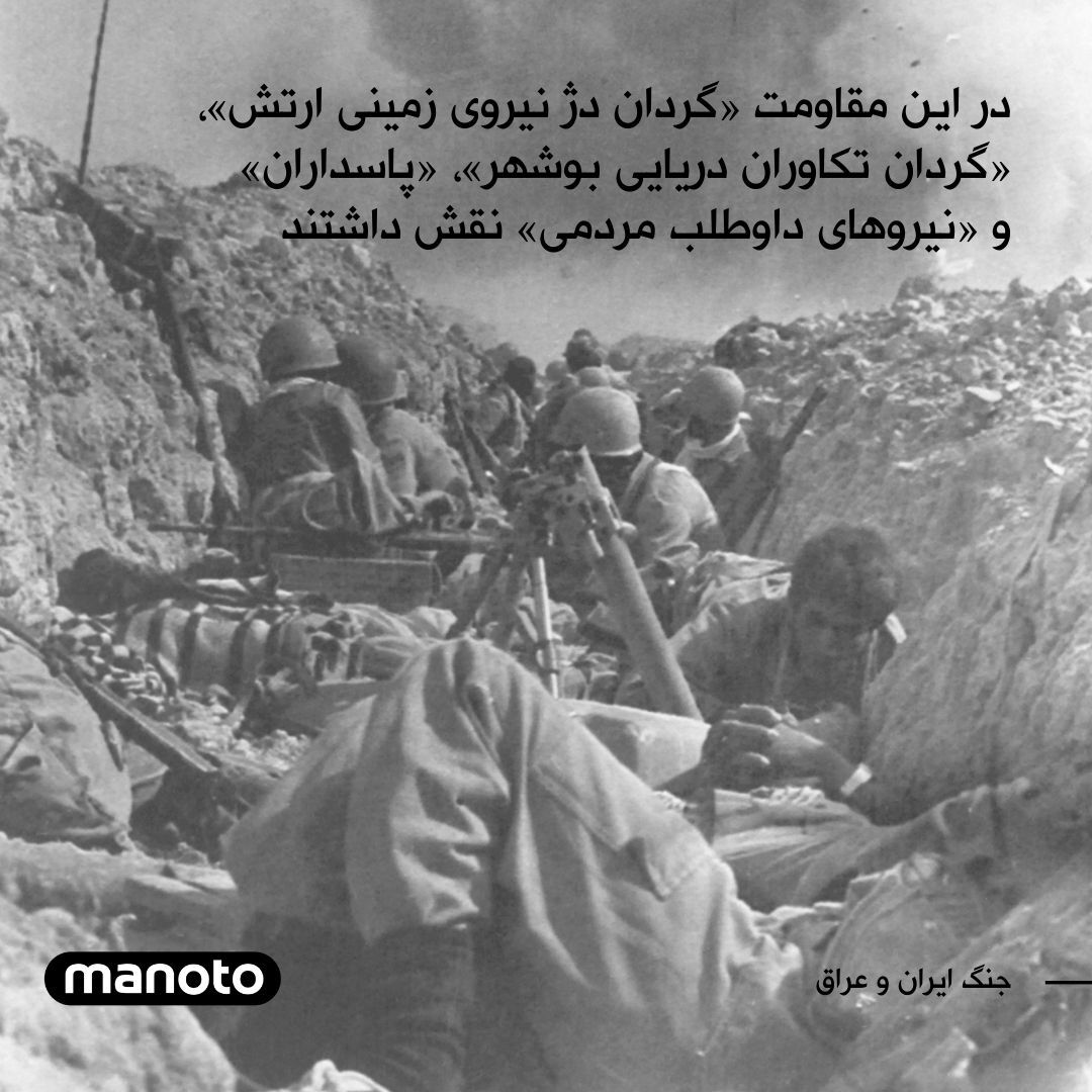 در این مقاومت «گردان دژ نیروی زمینی ارتش»، «گردان تکاوران دریایی بوشهر»، «پاسداران» و «نیروهای داوطلب مردمی» نقش داشتند. نیروهای ایرانی در ماههای آغاز جنگ اگر چه در دریا و هوا برتری داشتند اما در زمین نتوانستند مانع سقوط خرمشهر شوند.