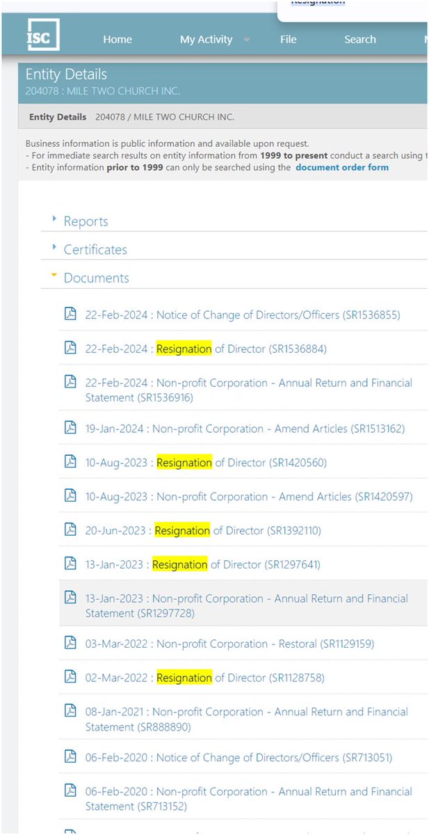Interesting because that that still-pastor-less Mile Two swamp sure seems to have lost a WHOLE lot of directors lately: