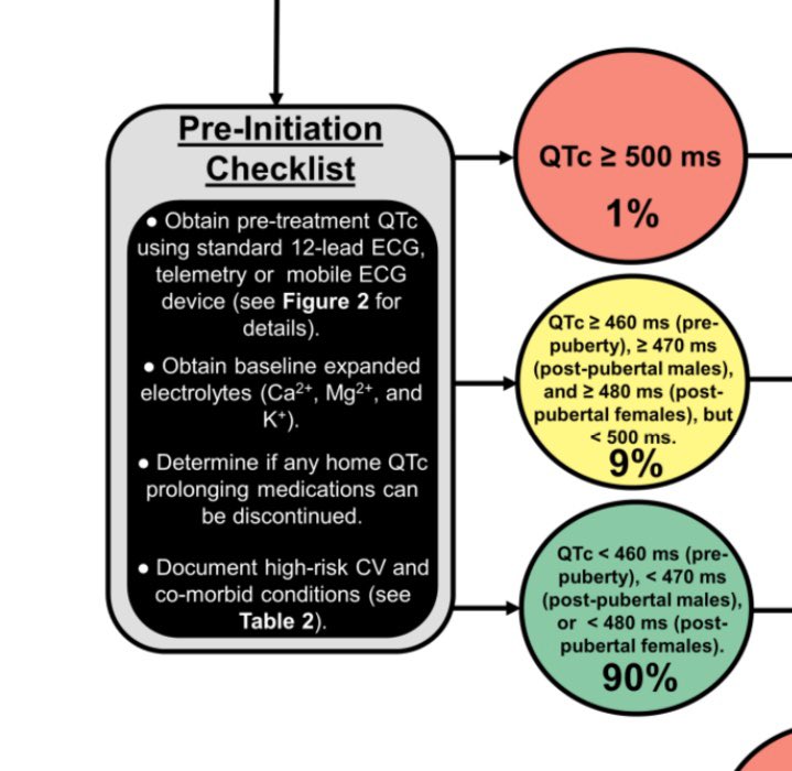 Measure QTc at baseline , if < 470- 480 (male/female)Green light; 470-500, Yellow, > 509 RED LIGHT