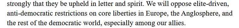 They will oppose "elite-driven, anti-democratic restrictions on core liberties in Europe" which might sound a bit ominous because it is. Who those "elites" are and which "core liberties" they mean remains to be seen as the Trump admin itself seems to have difficulties in ⬇️