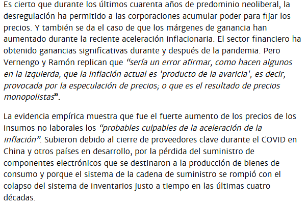 https://twitter.com/UGT_Comunica/status/1668521848529715200y que podría frenarse mediante vigilancia de los márgenes y controles de precios. Aunque en principio pueda parecer una buena noticia (se deja de lado la hoy inexistente espiral salarios-precios), parte de presupuestos erróneos y tiene implicaciones políticas problemáticas+