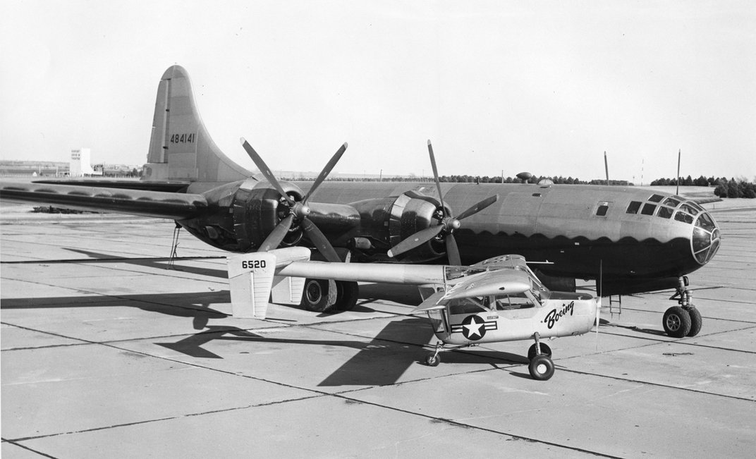 "General William E. Gilmore, head of the Air Corp’s Material Division at Wright Field, demonstrates the latest wonder to take to the sky: two-way communications. He’s perched in the nose of a B-2 Condor of the 96th Bomb Squadron. Photo dated 4-11-30."