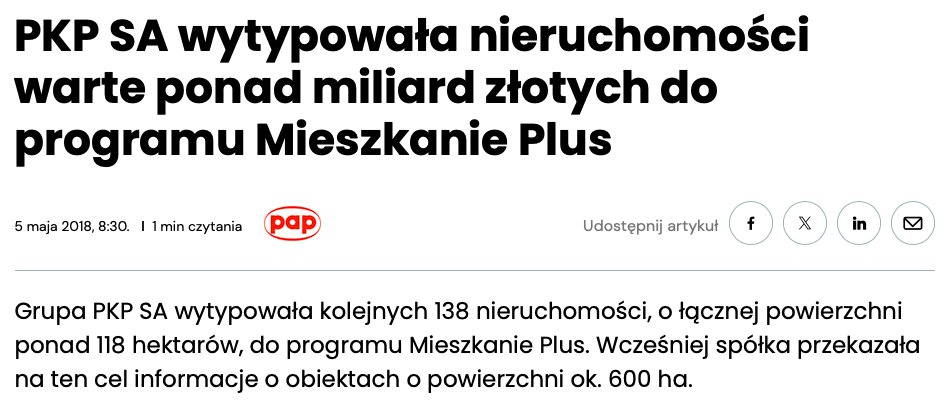 PKP SA przekazuje dane do Krajowego Zasobu Nieruchomości. Na podstawie ustawy o KZN powstał tzw. bank ziemi, który odpowiada za zagospodarowanie nieruchomości Skarbu Państwa. Grunty, które wchodzą do KZN, mogą zostać przeznaczone pod budowę mieszkań w ramach programu Mieszkanie+.