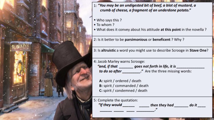 THREAD: Here’s various resources I’ve made for A Christmas Carol. The link to access all these resources is in the final tweet of the thread. Help yourself 😊 #teamenglish First up, a set of 20+ editable retrieval practice slides like this one: