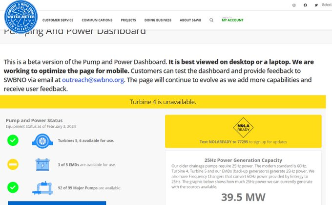 https://twitter.com/NOLAnews/status/1754225935472079079(2/5) These numbers are probably overstated. I included every 25 Hz pump at interior stations 1 and 2, but limits on their discharges make such use impossible. Also, based on years of Central Control power logs, load at the plant is usually no higher than 4.5 MW, but I have 5.7.