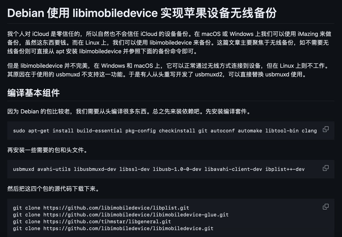 第二篇讲在 Debian 上无线备份苹果设备。这个教程很多东西是我总结出来的,网上资料很少。