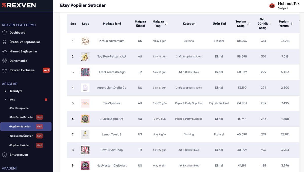 Etsy de en çok satan 20 mağazayı analiz ettiğimde 3 tanesinin dijital ürünler sattığını AMA son bir yılda kurulmuş ve en hızlı büyüyen mağazaları analiz ettiğimde ilk 20 mağazadan 17 tanesinin dijital ürün satıyor olduğunu gördüm.