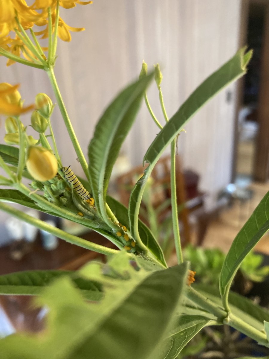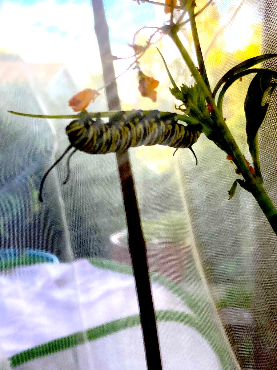 The monarch caterpillars are teens now. They don't want to be seen with me. I give up. Who the hell can keep up with what is going on with the damn teens these days?